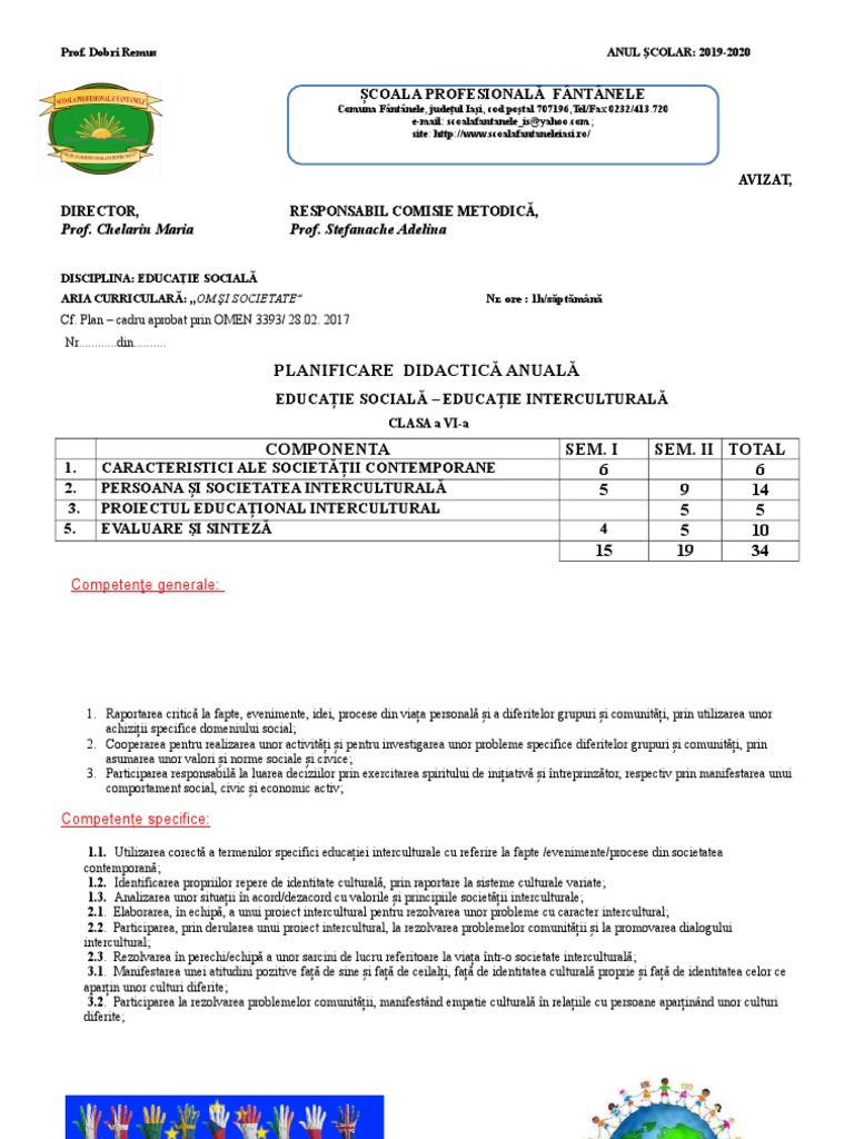 Planificare Calendaristica Educatie Sociala Vi Studocu Source from : https://www.studocu.com/ro/document/universitatea-din-craiova/psychology-in-education-dppd/practic/planificare-calendaristica-educatie-sociala-vi/7185607/view Scopul verificarea cunostintelor referitoare la tipurile de grupuri sociale si a relatiilor existente intre membrii unui grup. Abordarea integrată, în care exersarea gândirii critice se realizează pornind de la cunoașterea și promovarea propriilor drepturi și responsabilități.demersul didactic este construit în totalitate pornind de la probleme reale din viața de elev/elevă în perioada. Carte scolara, carte nefolosita, manuale scolare aprobat m.e.n. Cg1.realizarea practică de produse utile și/ sau de lucrări creative pentru activități curente şi valorificarea acestora. El este cel mai mare dintre cei cinci copii ai familiei.