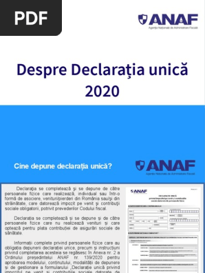 Conform prevederilor codului fiscal, declaratia unica se completeaza si se depune de catre persoanele fizice care realizeaza, individual. Noua declarație are 69 de pagini cu instrucțiuni de completare care generează declaratia unica are rolul de a regulariza venitul obținut în anul 2019 si de a estima venitul pentru anul 2020. Completarea corectă a declarației unice este o misiune imposibilă pentru cineva care nu este expert contabil.