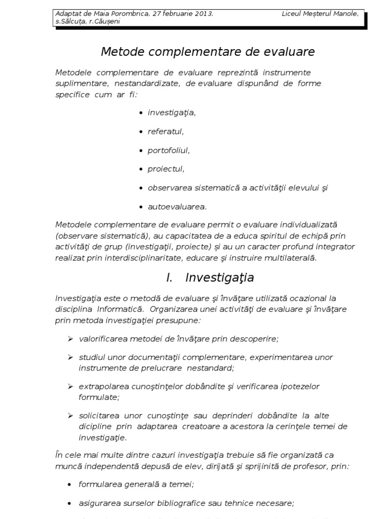 Metode Complementare De Evaluare Avantaje Si Dezavantaje