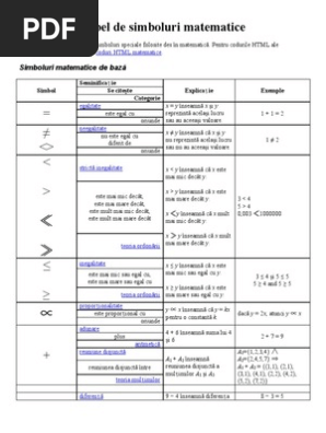 vizitati articolul complet aici : https://mquest.ro/home/learnunit?id=200 Dome7w și 40 alți utilizatori consideră că acest răspuns este de ajutor. Publicat pe iulie 4, 2011 de h3lld0wn. In questo articolo trovi un lungo glossario dei simboli matematici, catalogati per ciascuna delle principali branche della matematica in cui vengono.